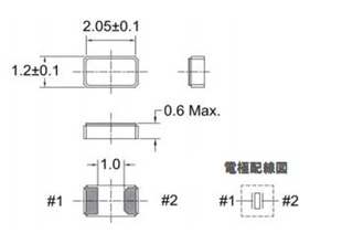 西鐵城晶振,CM2012H晶振,頻率范圍:32.768KHZ,厚度1.6 × 1.0 × 0.5mm,應用于:小型通信設備.