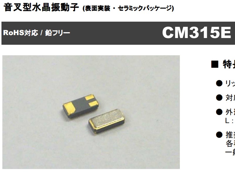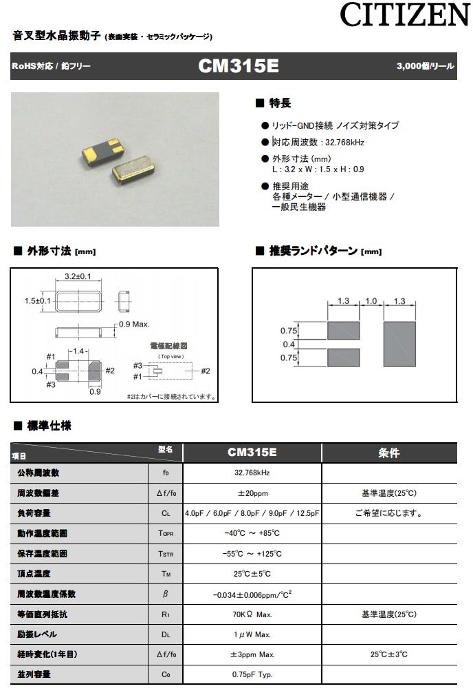 | CM315E32768DZZT-4PF | Citizen晶振 | CM315E | kHz Crystal (Tuning Fork) | 32.768KHZ |