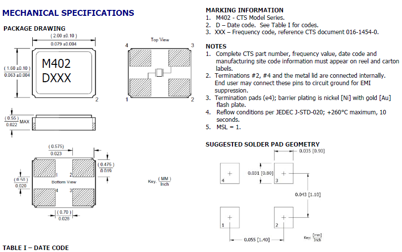 | CTS晶振規格 | 單位 | 402晶振 | 石英晶振基本條件 |