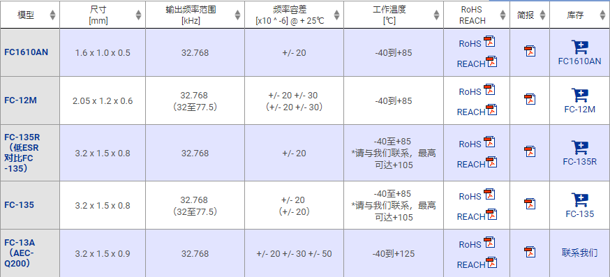 愛普生KHZ晶振系列型號表