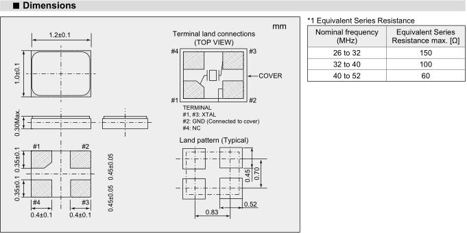 | 尺寸: | 1.2*1.0*0.3mm | 負載: | 8PF | 精度: | 10PPM | ||