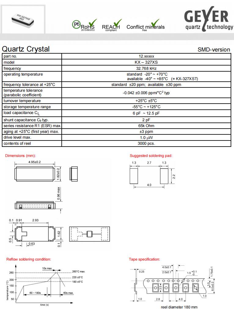 12.87126|32.768KHz|12.5pF|Geyer高端晶體,Geyer晶振,KX-327XS進(jìn)口石英晶振,無(wú)源晶振,12.87126晶振,4918貼片晶振,石英晶體諧振器,二腳貼片晶振,SMD晶振,頻率32.768KHz,負(fù)載12.5pF,頻率容差20ppm,工作溫度-20~70°C,高端晶體,高精度晶振,無(wú)鉛環(huán)保晶振,移動(dòng)應(yīng)用晶振,無(wú)線通信設(shè)備晶振,專業(yè)視頻設(shè)備晶振,微處理器時(shí)鐘晶振.