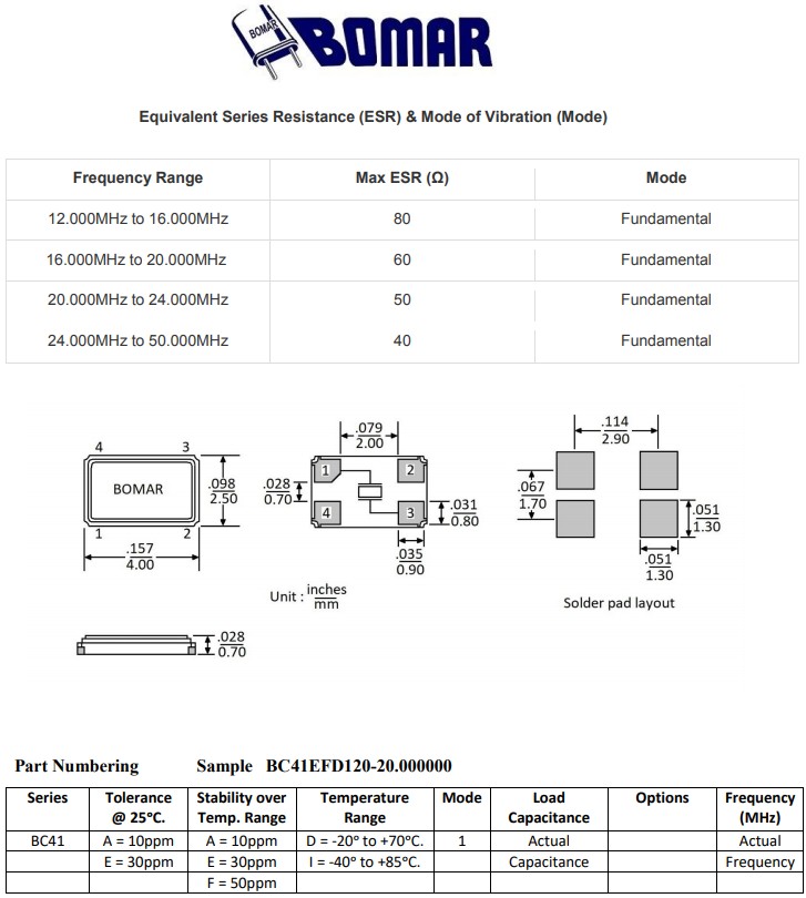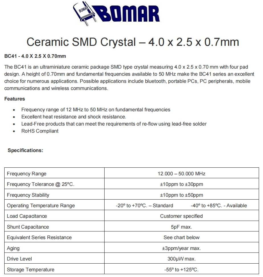 美國Bomar晶振,BC41AAD118-32.000000,6G移動通信晶振規(guī)格表