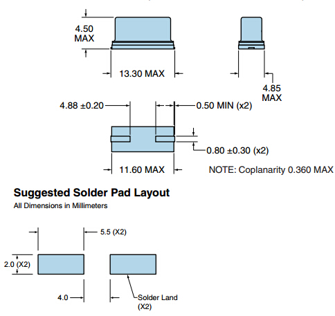 | 尺寸 | 2-Pin HC-49/UP SMD |