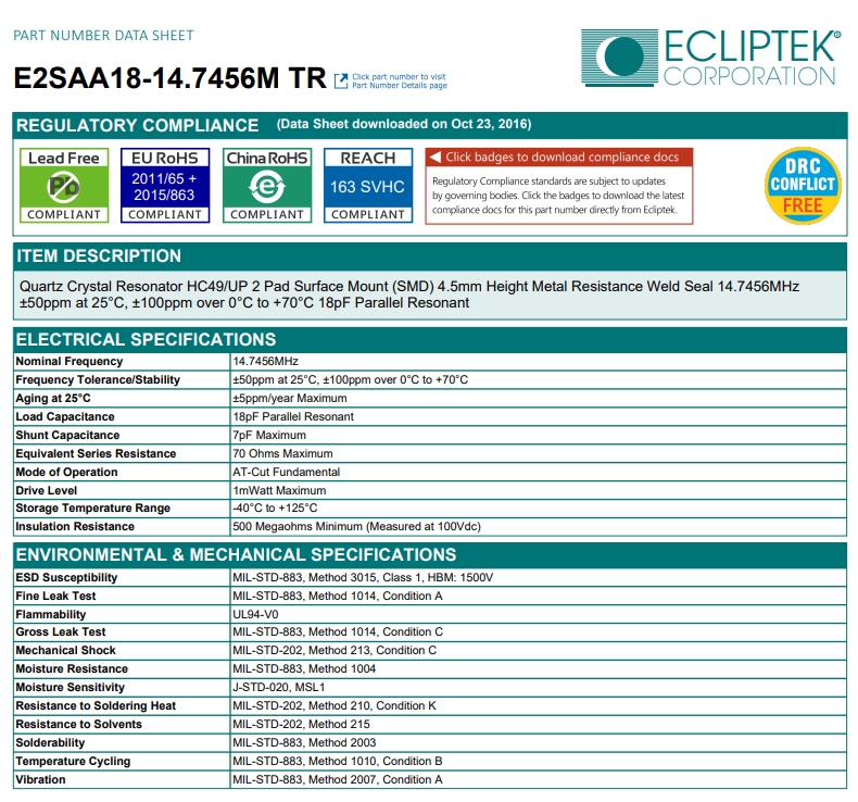 E2SAA18-14.7456M TR|ECLIPTEK晶振|SMD晶振