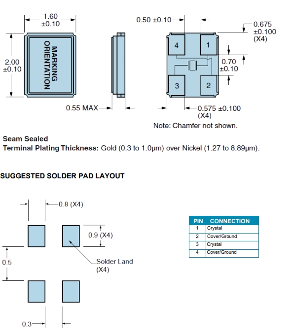 | EA1620JA12-20.000M | 表面貼裝晶體諧振器 | Crystal Resonator 20MHz ±15ppm (Tol) ±30ppm (Stability) 12pF FUND 120Ohm 4-Pin CSMD Bulk | -40~85 |