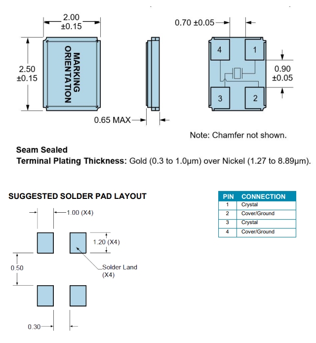 | EA1620JA12-20.000M | 表面貼裝晶體諧振器 | Crystal Resonator 20MHz ±15ppm (Tol) ±30ppm (Stability) 12pF FUND 120Ohm 4-Pin CSMD Bulk | -40~85 |