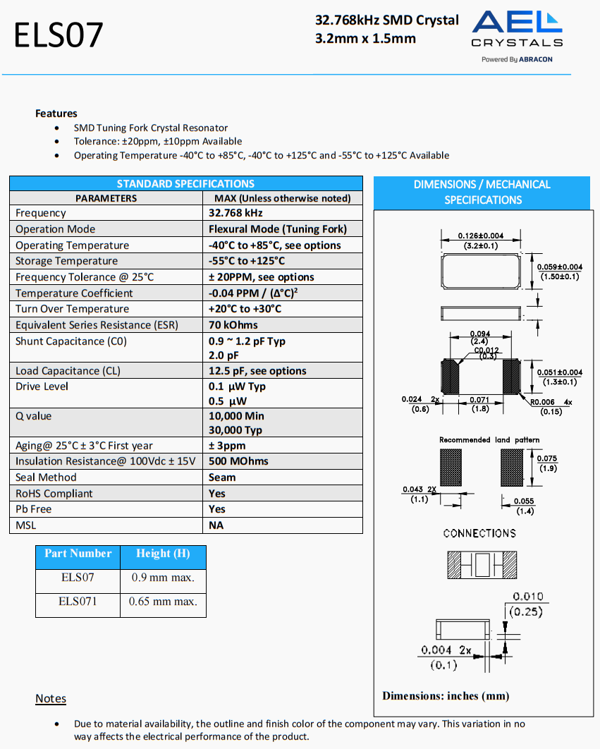 ELS07-32.768kHz-T|ELS07|32.768K|AEL