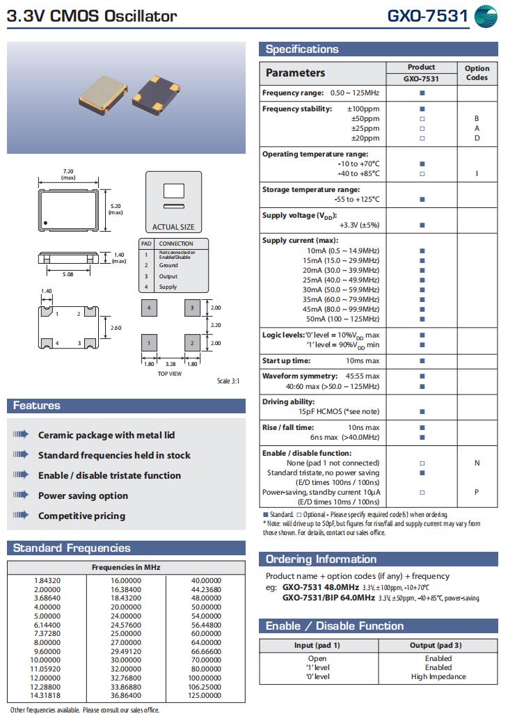 GXO-7531/DIP 25.0MHz|Golledge Crystal規格表