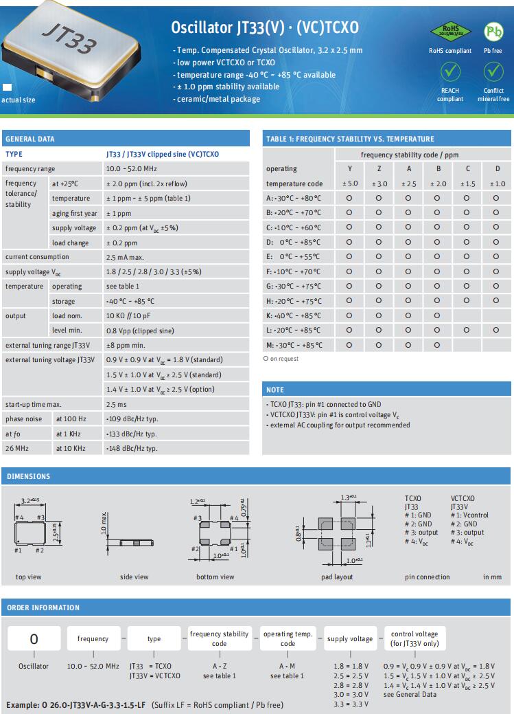 | Q 26.0-JXS22-12-10/10-FU-WA-LF | Jauch晶振 | JXS22-WA | 26MHz | ±10ppm | 12pF | -20°C ~ 70°C |