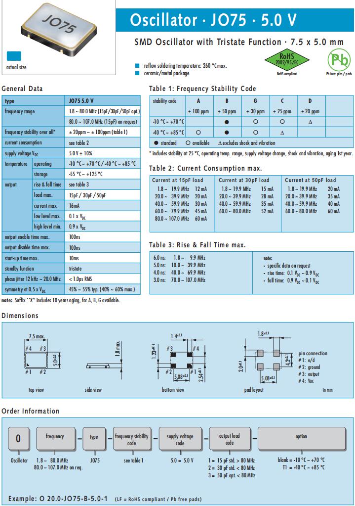 | Q 20.0-JXS22-10-10/10-FU-WA-LF | Jauch晶振 | JXS22-WA | 20MHz | ±10ppm | 10pF | -20°C ~ 70°C |