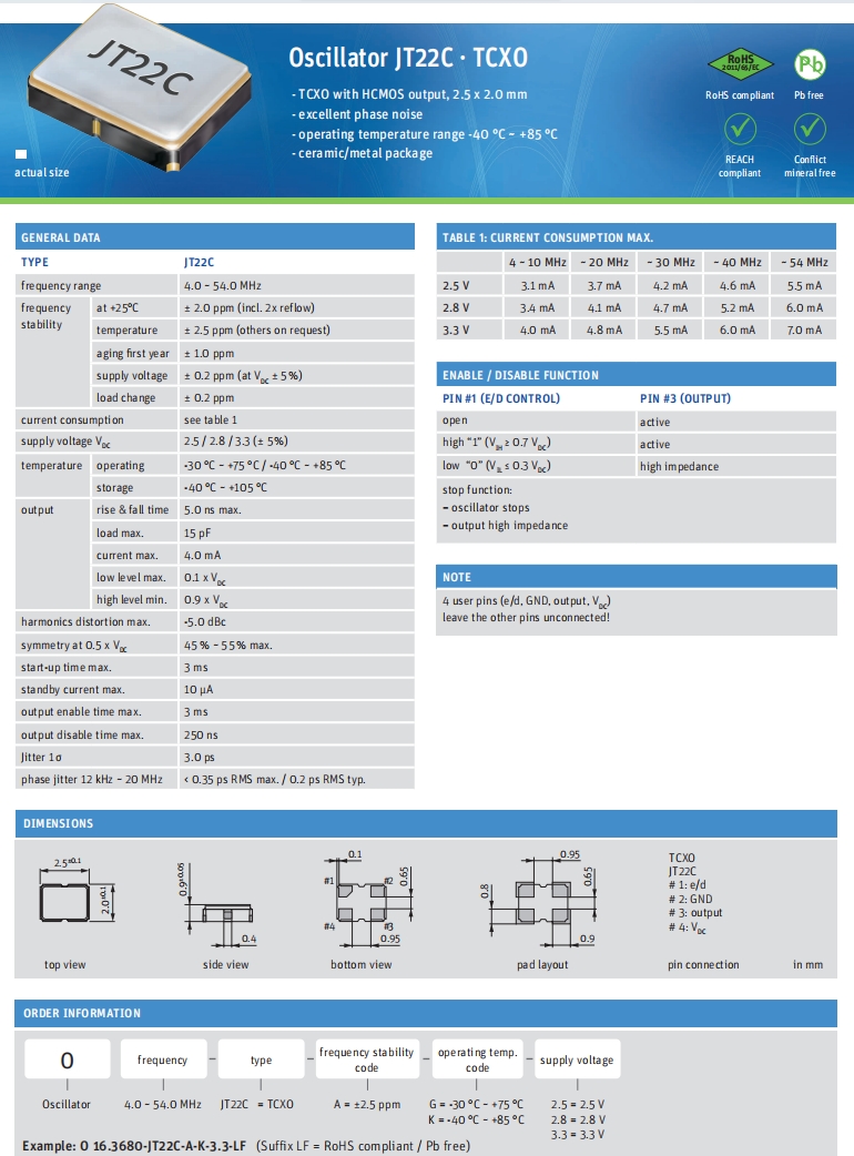 | Q 20.0-JXS22-10-10/10-FU-WA-LF | Jauch晶振 | JXS22-WA | 20MHz | ±10ppm | 10pF | -20°C ~ 70°C |