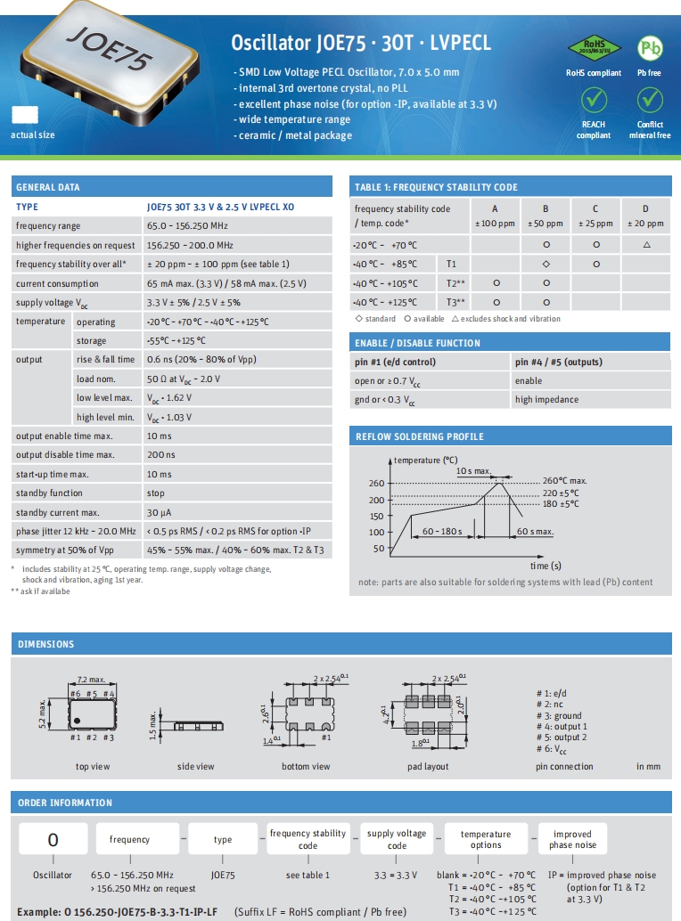 -貼片低壓PECL振蕩器,7.0 x 5.0 mm