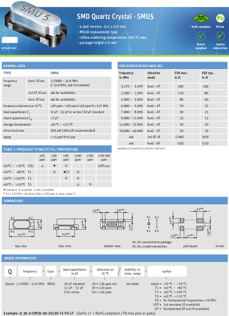 Q 3.68640-SMU5-30-30/50-T1-LF|Jauch Crystal規格表