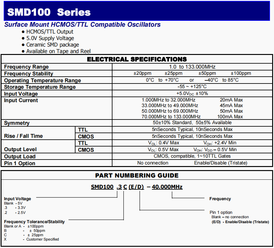 | 引腳1選項(xiàng) | No connection Enable/Disable (Tristate) |