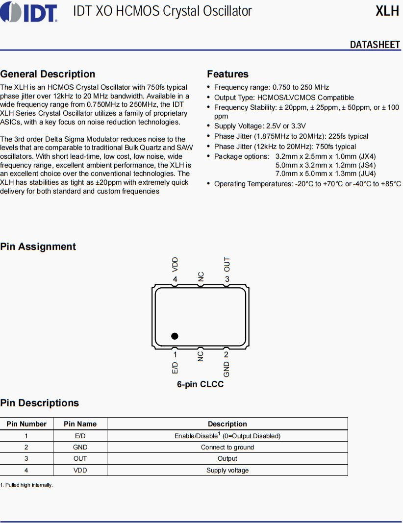 | 型號 | XLH晶振 (OSC有源晶振) | |