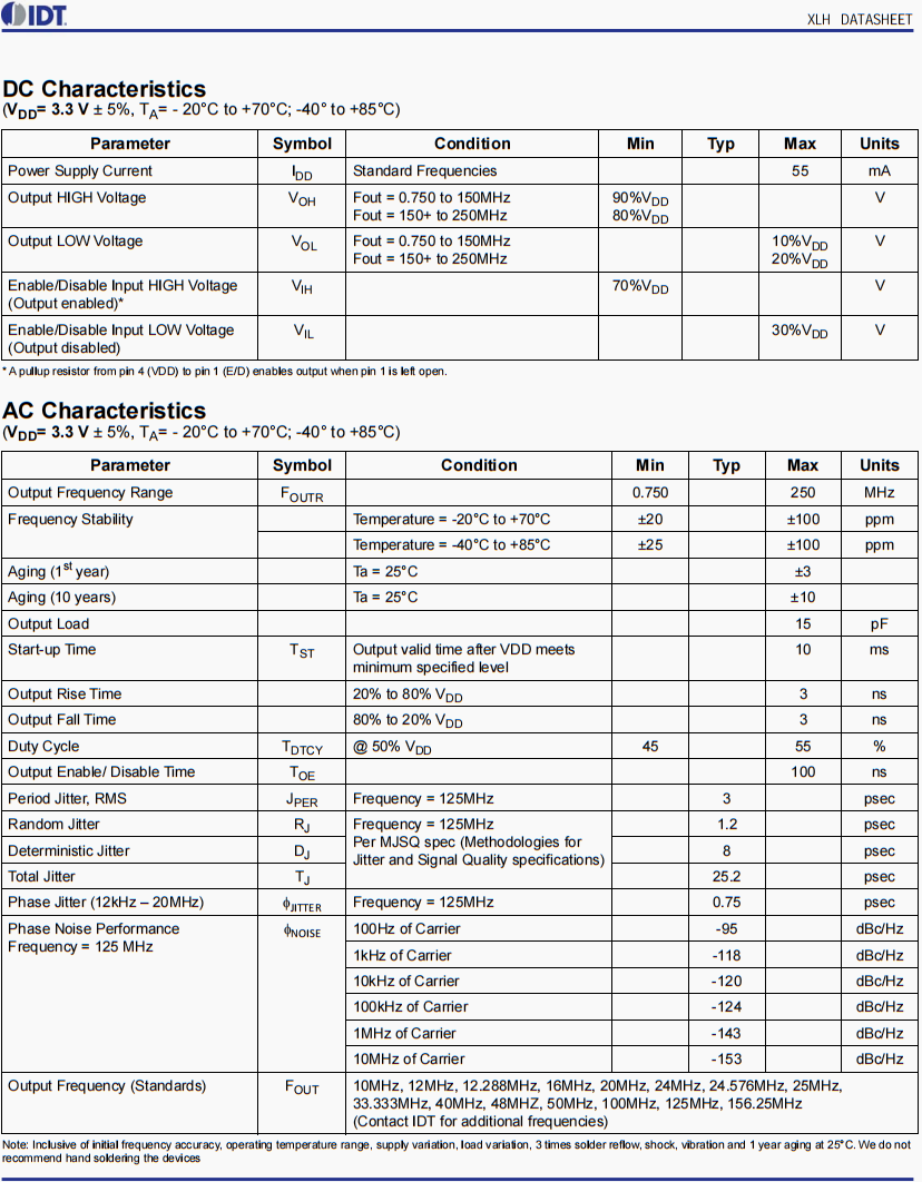 | XUP535125.000JS6I8 | IDT晶振 | XUP | XO (Standard) | 125MHz | LVPECL | 3.3V |