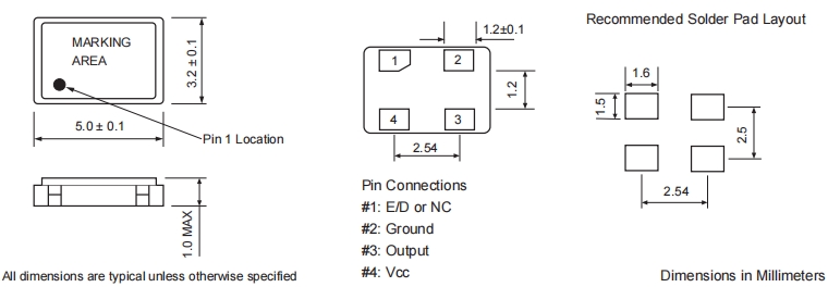 XO53-25M000-B25B3|25MHz|3.3V|Fortiming晶振尺寸圖