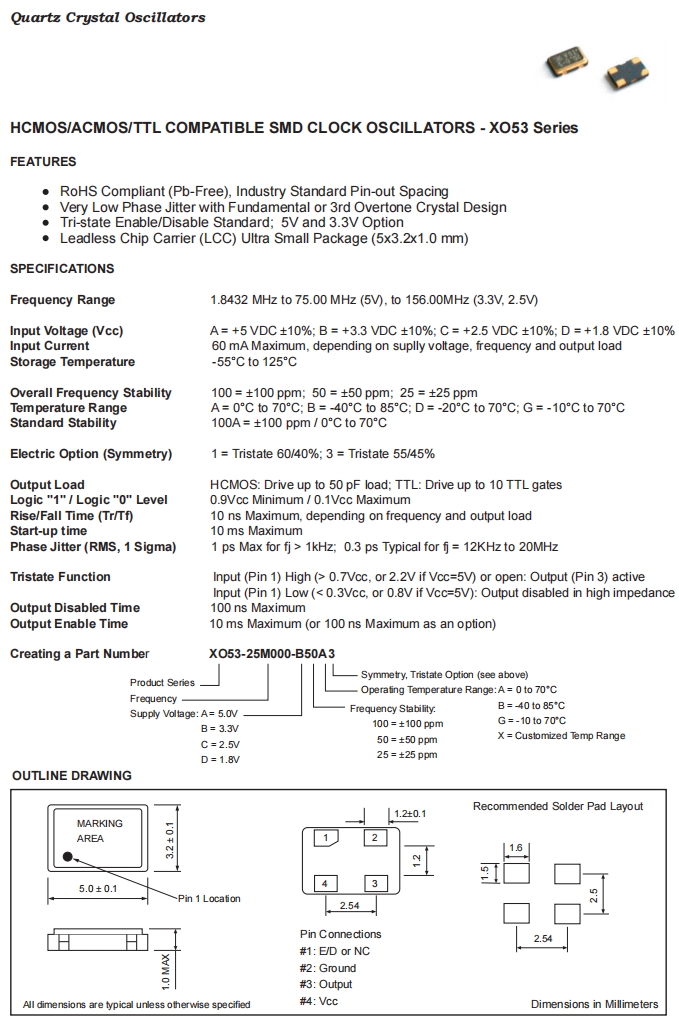XO53-25M000-B25B3|25MHz|3.3V|Fortiming晶振規(guī)格表