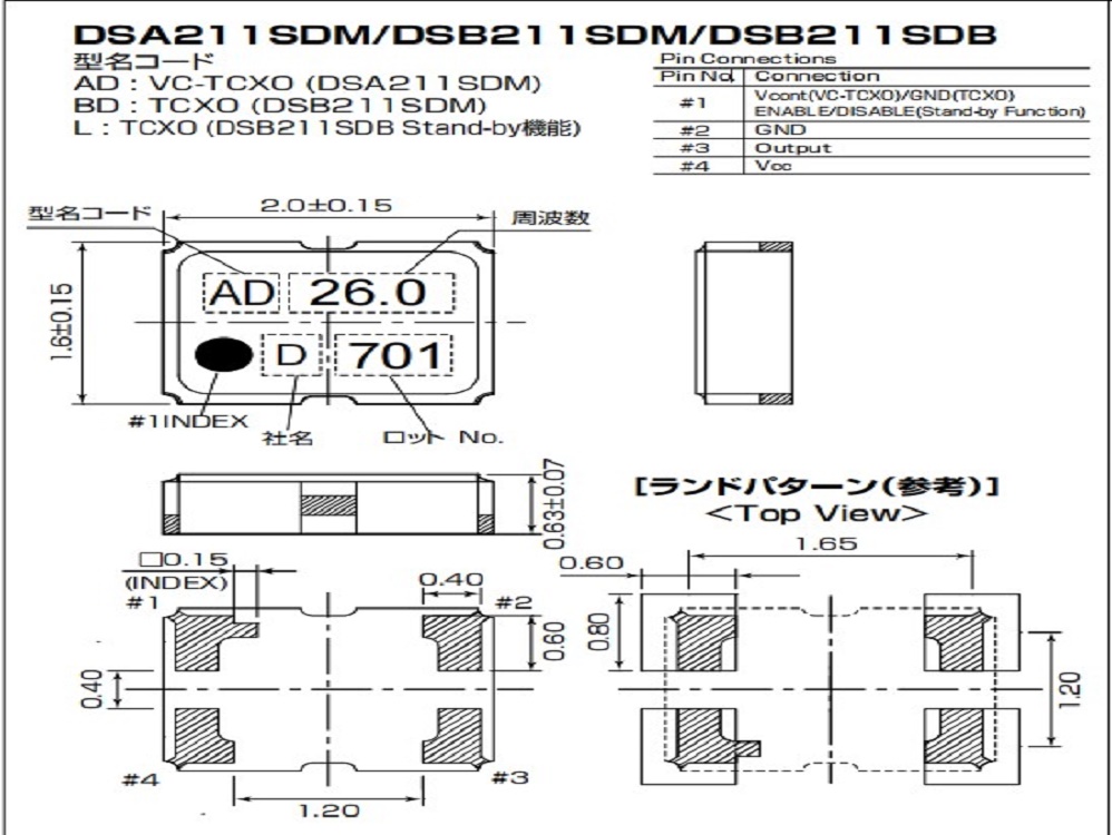 | KDS晶振 | 1XXD26000CAL | DSB211SDA | 2016 | 26.000MHZ | ||
