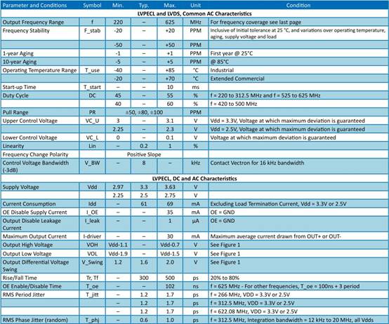 鎖相-當VCXO用于鎖相環應用時,偏差應始終至少與VCXO本身及其鎖定的參考或信號的組合不穩定性一樣大.Vectron生產一系列VCXO,特別適用于鎖相環應用(在隨后的頁面中有描述).但是,如果系統的開環穩定性要求比該產品系列中的更嚴格,則可能需要TC/VCXO.對于最高穩定性開環要求,適當的振蕩器可以是此cata-log的TCXO或OCXO部分中描述的那些,包含窄偏差VCXO選項,而不是VCXO部分中描述的那些.