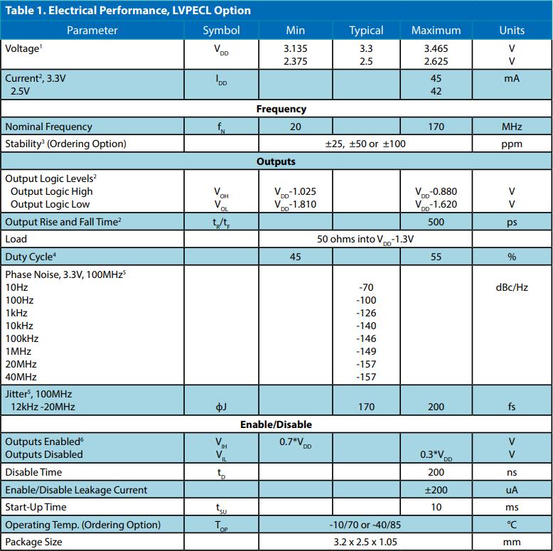 3.啟用/禁用:啟用/禁用引腳類似于開/關開關。啟用/禁用時為低電平或邏輯0會導致設備不振蕩。使能/禁止引腳上的“高電平”或邏輯1允許單元正常工作(使能),產生指定的輸出。