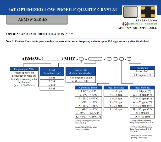 Abracon晶振解決節(jié)能MCU石英晶體ABM8W-13.0625MHZ-6-D1X-T3,ABM8W-20.0000MHZ-4-B1U-T3,藍牙晶振