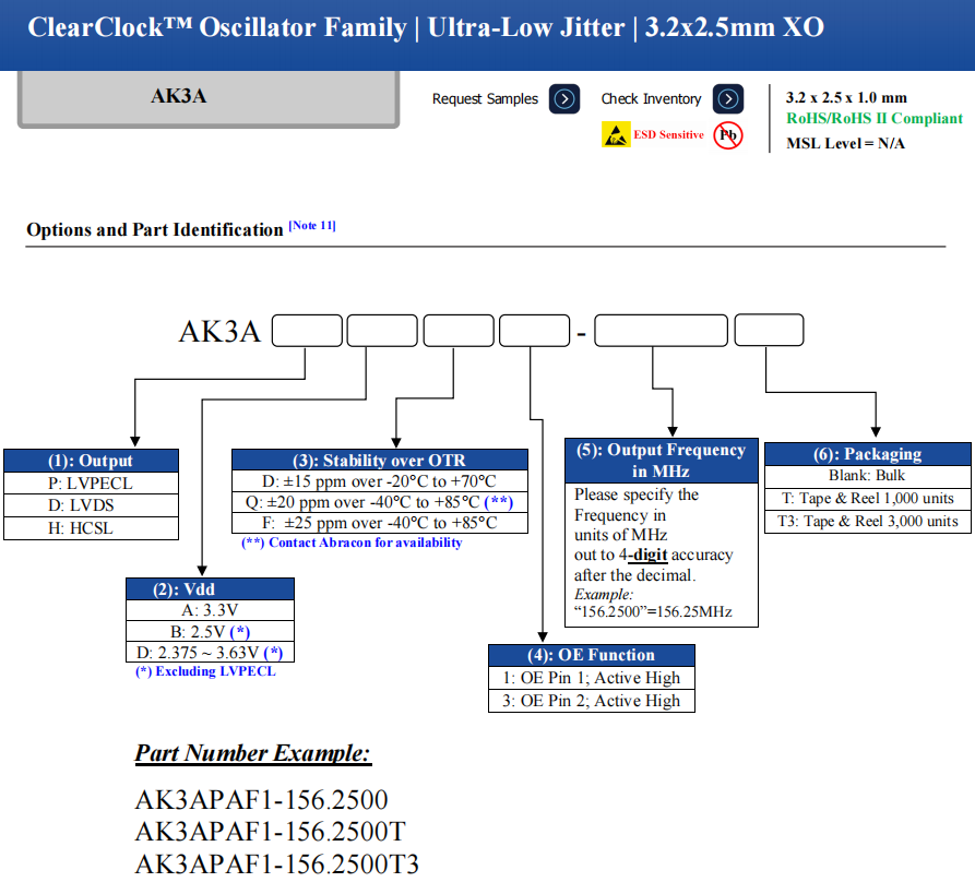 - [2023-06-21]低抖動振蕩器AK2APAF1-156.2500...