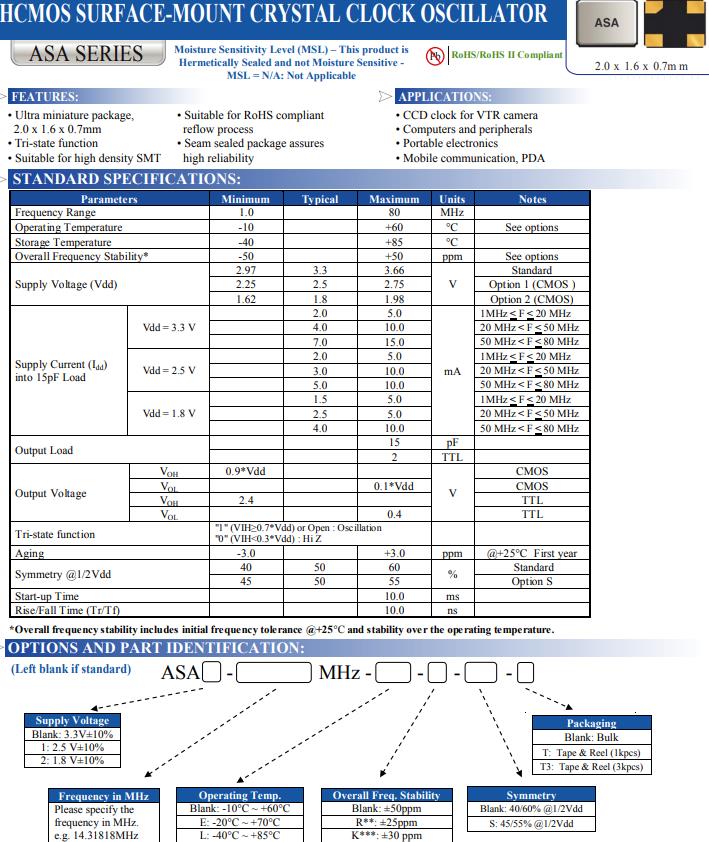 迷人包裝的SMD有源晶振ASA2-12.000MHZ-L-T非常適合于便攜式電子設(shè)備