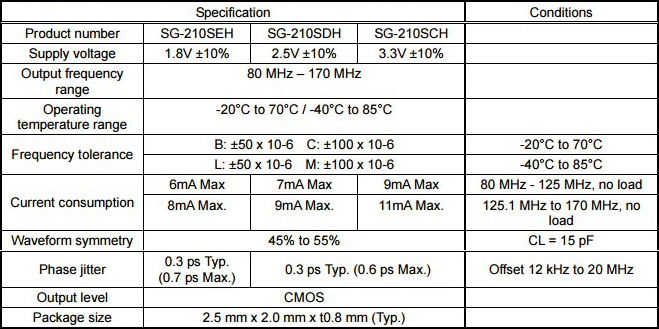 剛剛得知一重要消息,日本精工愛普生公司今兒個發(fā)布了一款新產(chǎn)品,對新品SG-210S做了個概述,2.5*2.0*0.8mm型的貼片晶振,振蕩在一個穩(wěn)定的高頻80~170MHZ范圍內(nèi).
