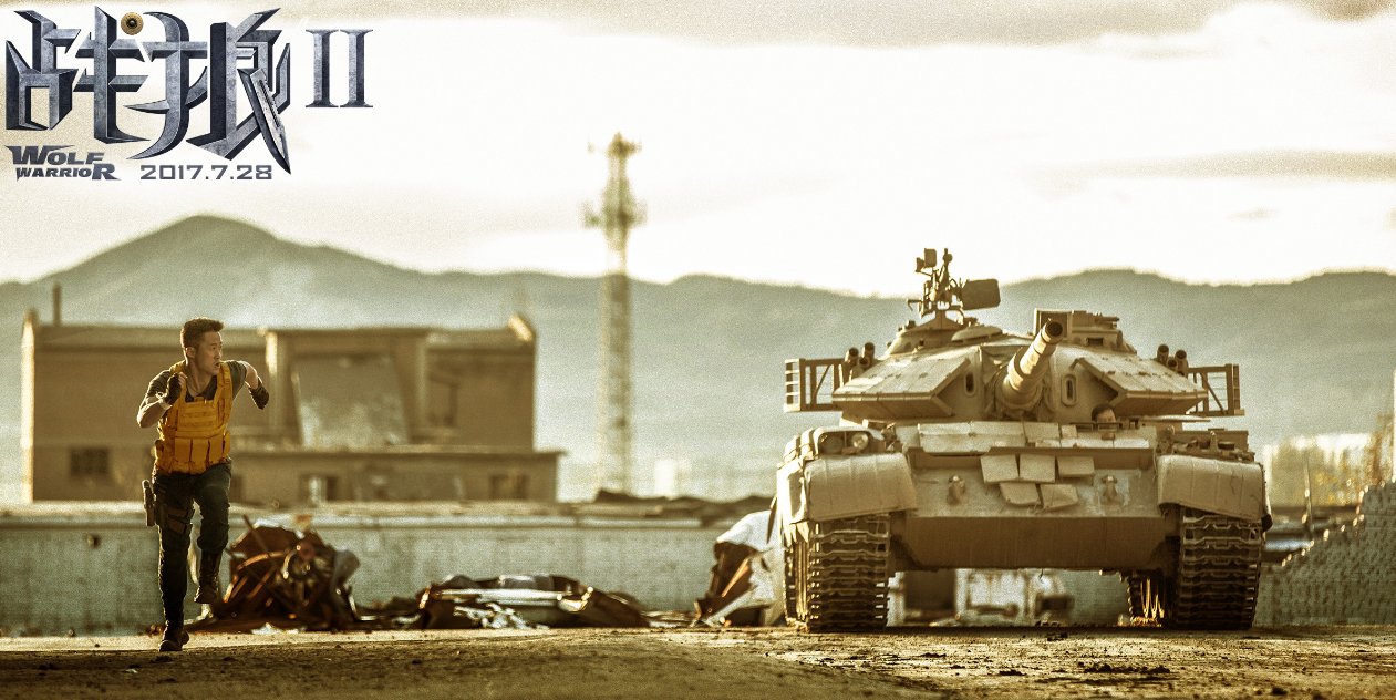 “更有沖擊力,格局更大”,坦克砸坦克、坦克漂移、非洲街追車、水下搏斗,這些大場面的實拍過程,無不體現《戰狼2》的國際化水準。開場6分鐘長鏡頭、非洲街追車、坦克漂移、直升機墜落、軍艦導彈發射等被提及最多的大場面戲,全部都是實拍。吳京說:“我們現在還不能完全做到好萊塢式的流程化,但我們敢于嘗試。只要鏡頭好看,都會義不容辭去做。”片尾那場大戰中,劇組現場拍攝時用到10輛約20噸的坦克,當中6輛用來撞圍墻,另外還準備了兩輛專門用來炸,都是59式中型坦克。