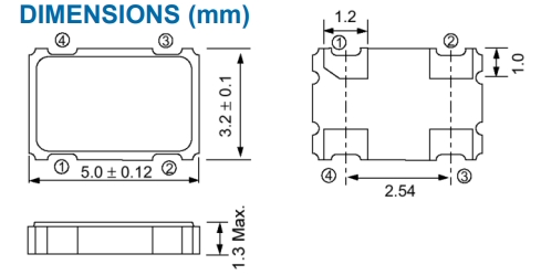 | Size/Dimension尺寸 | 5032mm晶振 | 最小包裝數MPQ: | 1000 |