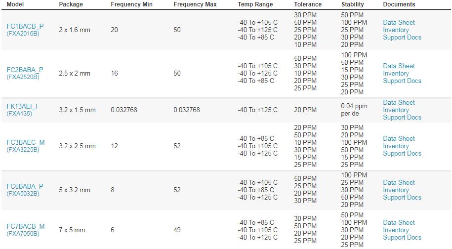FOX晶振北美銷售和營銷經理指出:“今天的頻率元器件可以在惡劣環境中有效的運行,商業級的已經不再是常用系列。可以通過提供這些擴展溫度晶體作為原料,有助于為客戶提供設計周期。”全系列樹脂密封FQ SMD晶體現已在-40至85度,擴展溫度已達85度。這些超薄型低成本晶體的標準公差為+-30PPM,標準穩定性為+-50PPM.有四種標準封裝尺寸可供選擇。