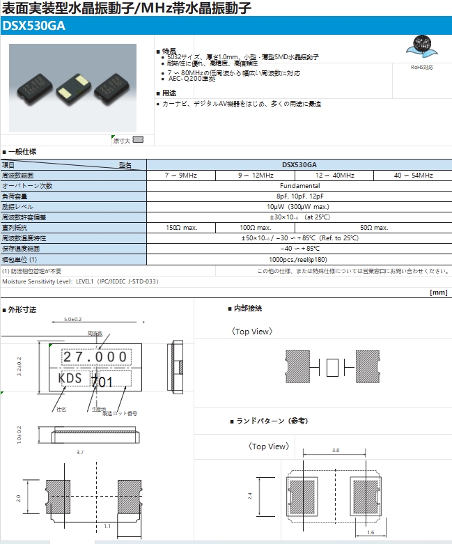 | KDS晶振 | 1TJH125DR1A0004 | DST1610A | 1610 | 32.768KHZ | 12.5PF | 20PPM |