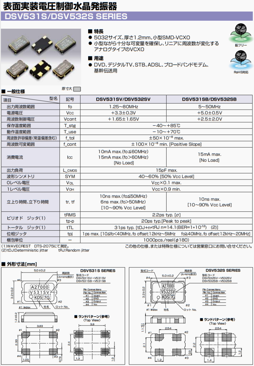 | 相位抖動 | tpj | 1ps max. [10≦fo<40MHz、fo offset:12kHz~5MHz fo≧40MHz、fo offset:12kHz~20MHz] | |