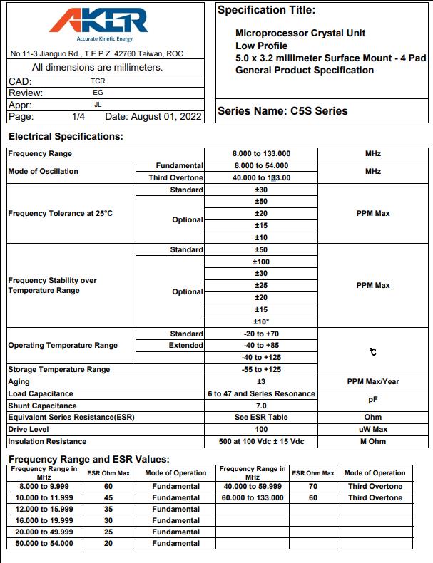 AKER Crystal|C5S-40.000-18-3050-X1-R規(guī)格表