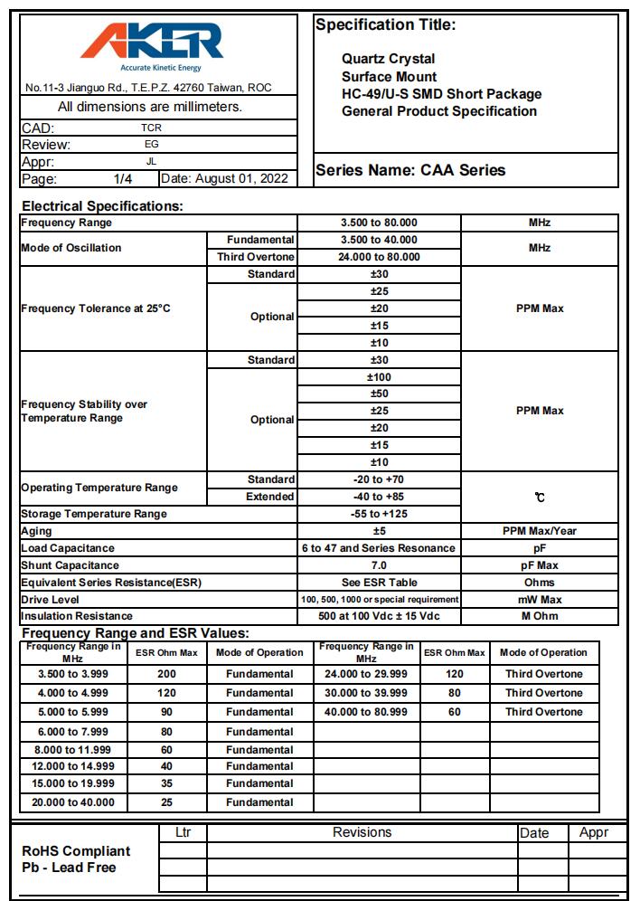CAA-11.0592.000-12-1020-X-R|11.0592MHz|12pF規(guī)格表