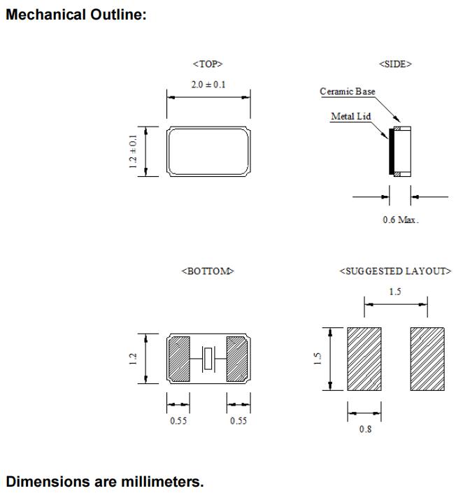 • 晶振尺寸:2.0*1.2*0.6mm
