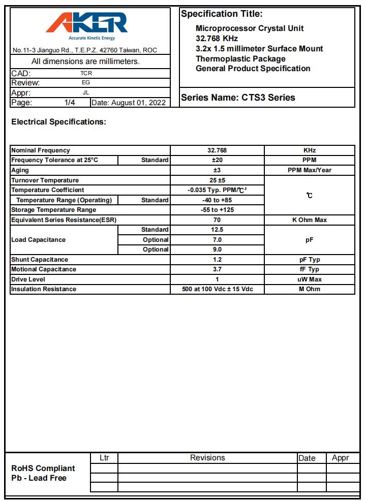 CTS3-32.768-7-20-X-R|32.768KHz|7pF|AKER安基晶振規(guī)格表