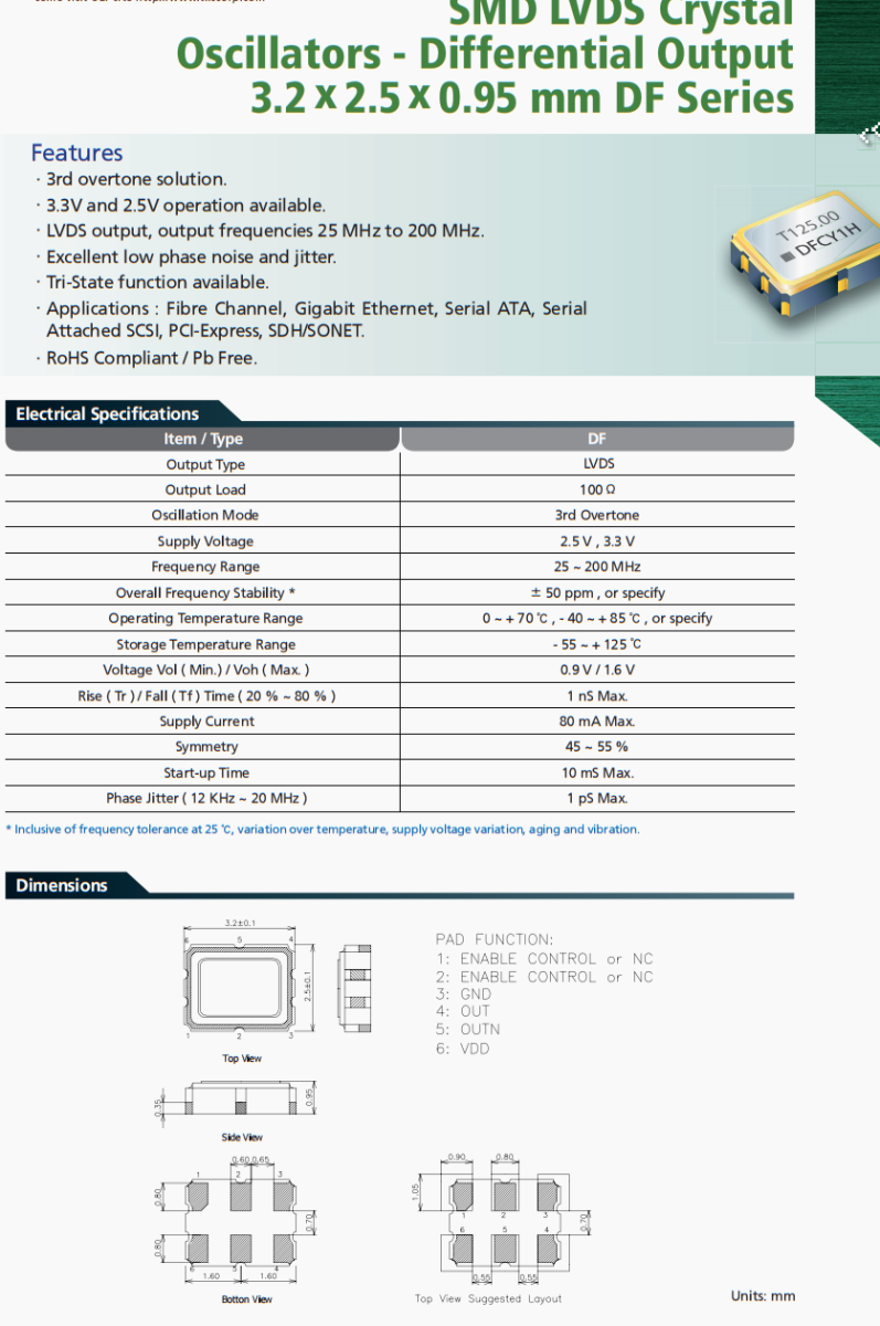 TXC晶振,DFA0000001差分LVDS晶振,DF衛(wèi)星通信6G晶振