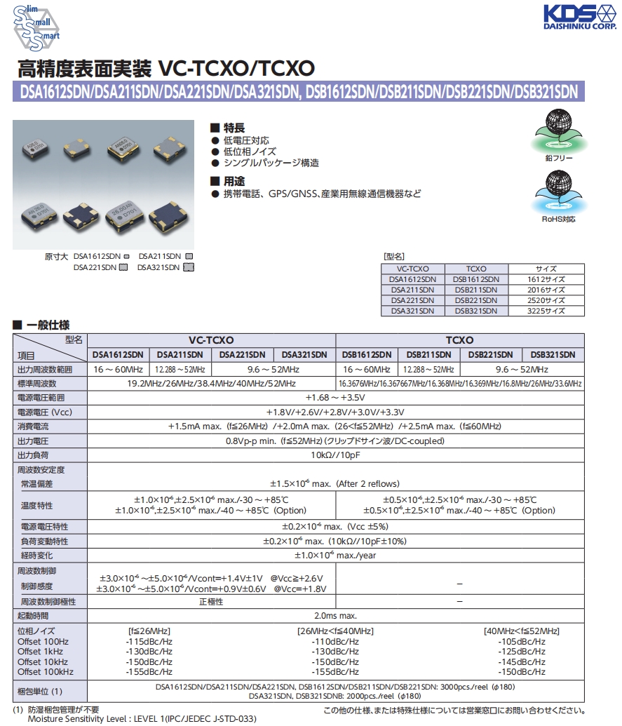 KDS溫補晶體振蕩器,DSB211SDN晶振,1XXD52000PBA規格表