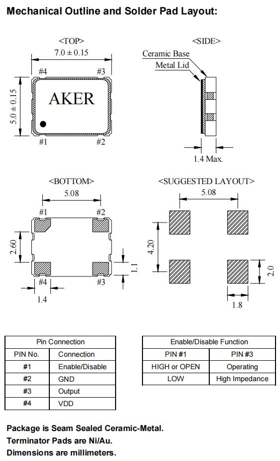 S733020T-48.000-X-15-R|48MHz|3.3V|臺灣AKER晶振尺寸圖