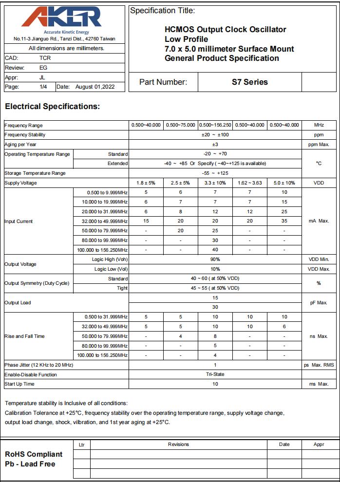 S733020T-48.000-X-15-R|48MHz|3.3V|臺灣AKER晶振規(guī)格表