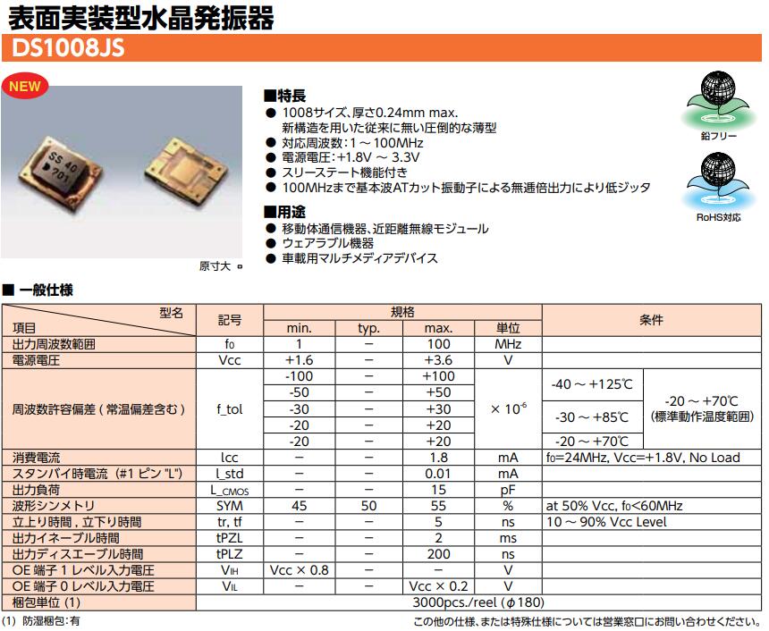 通過新設計石英芯片,安裝石英芯片和新工藝以及優化封裝設計,我們已經實現了全球最小,最薄的性能,其性能等于或優于傳統產品。我們將繼續生產各種小型和薄型產品以及高功能,高頻率,高可靠性,低功耗型等各種功能,并將有助于各種設備的小型化/高功能性。