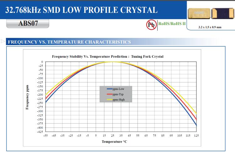 ABS07-32.768KHZ-T這顆晶體就更厲害了。雖然說ABS07-32.768KHZ-T沒有ABS05-32.768KHZ-T晶振那樣苗條的身材,稍微的略胖一點,但是ABS07-32.768KHZ-T晶體可耐高溫啊,內心可以承受更大的壓力,就算在-55度的低溫或者是在125度的高溫下,ABS07-322.768KHZ-T仍然可以正常的工作,就算天塌下來也是可以頂得住。絲毫不受任何影響。一般情況下通訊產品就會用的比較多一點。像無線通信,PDA,智能手機等。