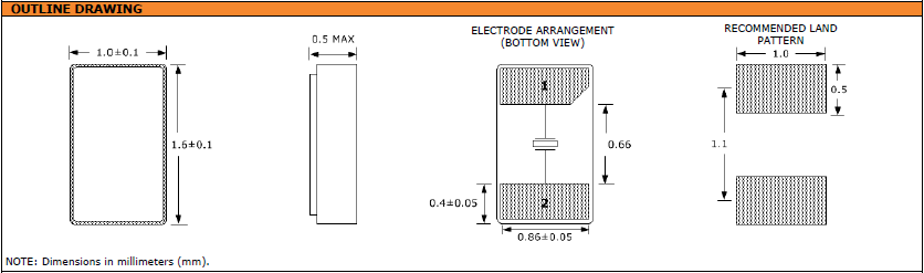 | 激勵功率 | DL | 0.5μW Max. | 推薦:1μW ~ 100μW |