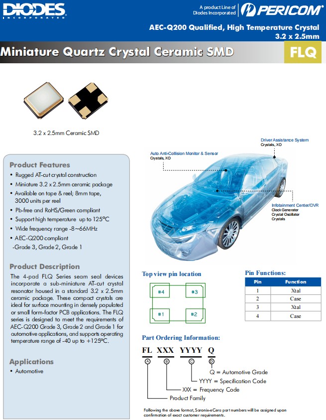 Diodes百利通晶振,FLQ耐高溫晶振,FL1200112超小型晶振,FL2000059無源晶振,汽車電子晶振