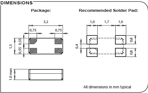 Microcrystal晶振,微晶貼片晶振,OV-7604-C7晶振,頻率24 – 50MHZ,封裝尺寸:3.2*1.5*0.75mm